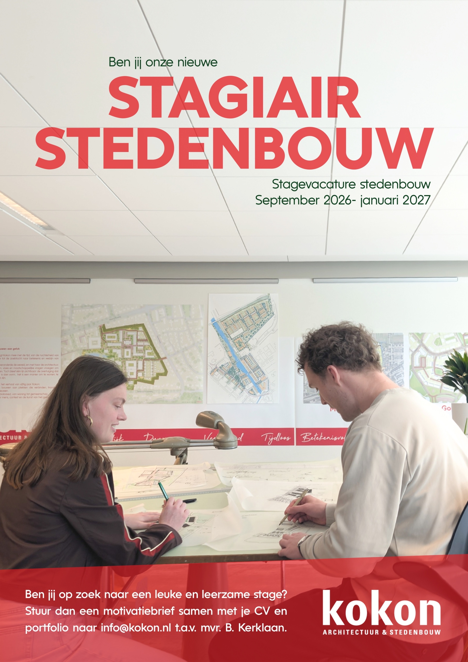 Ben je nog op zoek naar een leuke en leerzame stage én ben je enthousiast geworden? Reageer dan snel met motivatiebrief, CV en beknopt portfolio (<10Mb) naar info@kokon.nl, t.a.v. mvr B. Kerklaan